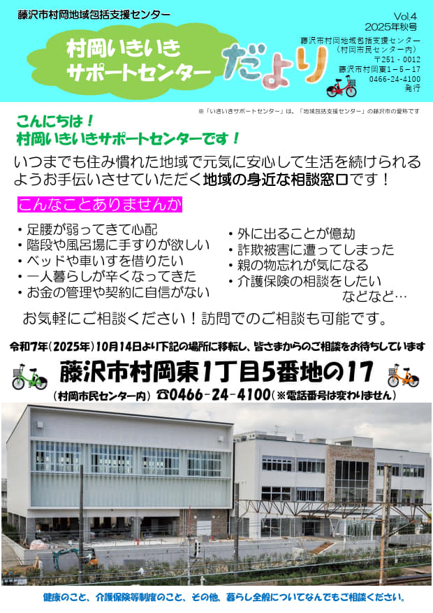 この度、新村岡市民センターの完成に伴い、村岡いきいきサポートセンター(村岡地域包括支援センター)の事務所を新村岡市民センター内へ移転することとなりました。