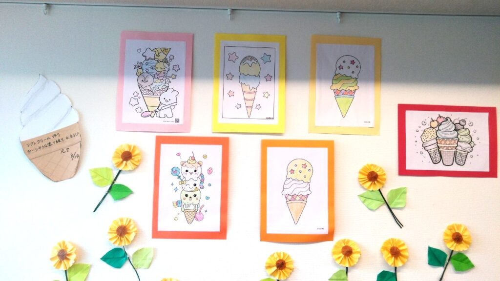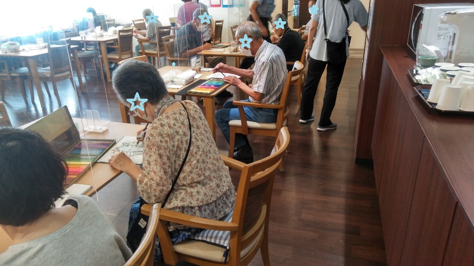 ソフトクリーム作りや塗り絵を催し、入居者の皆さまと夏のひとときを楽しく過ごしました。