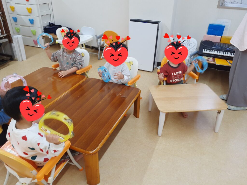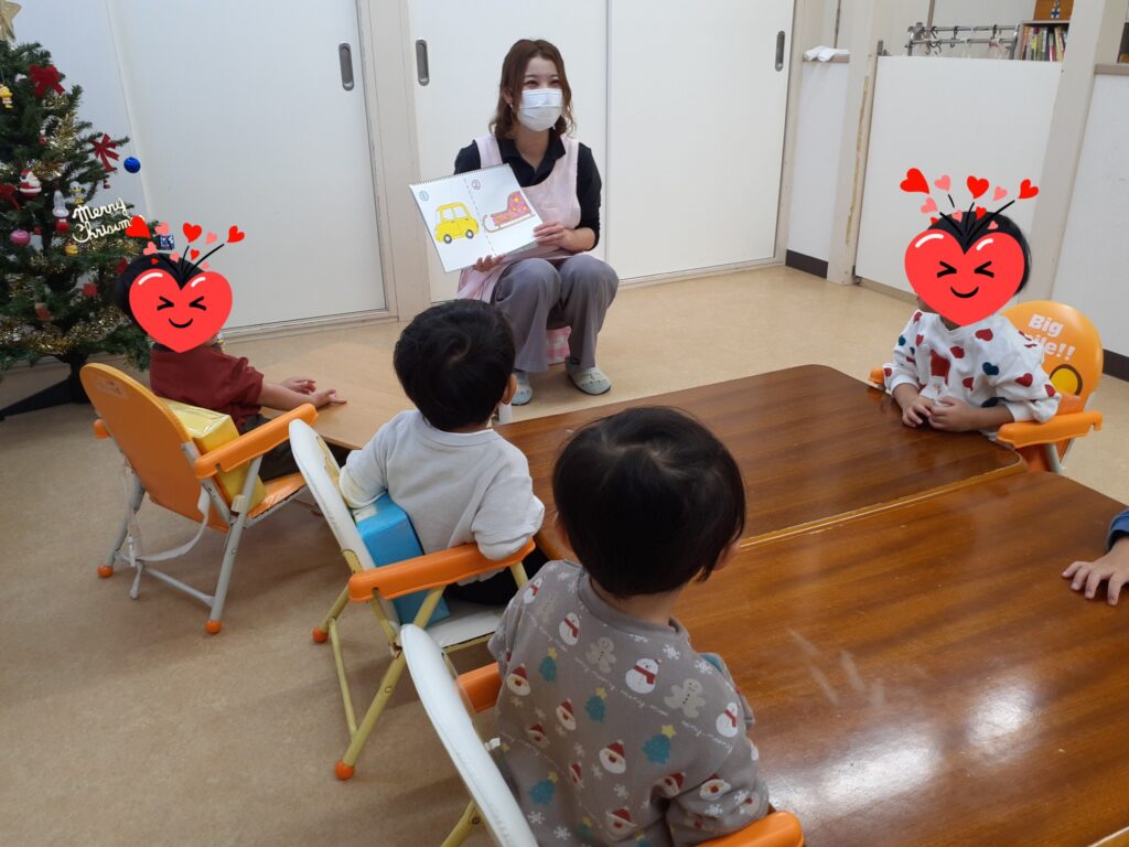 保育士が用意したクイズや、クリスマスの曲に合わせてタンブリンで皆で楽しく演奏しました!