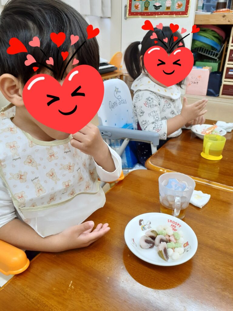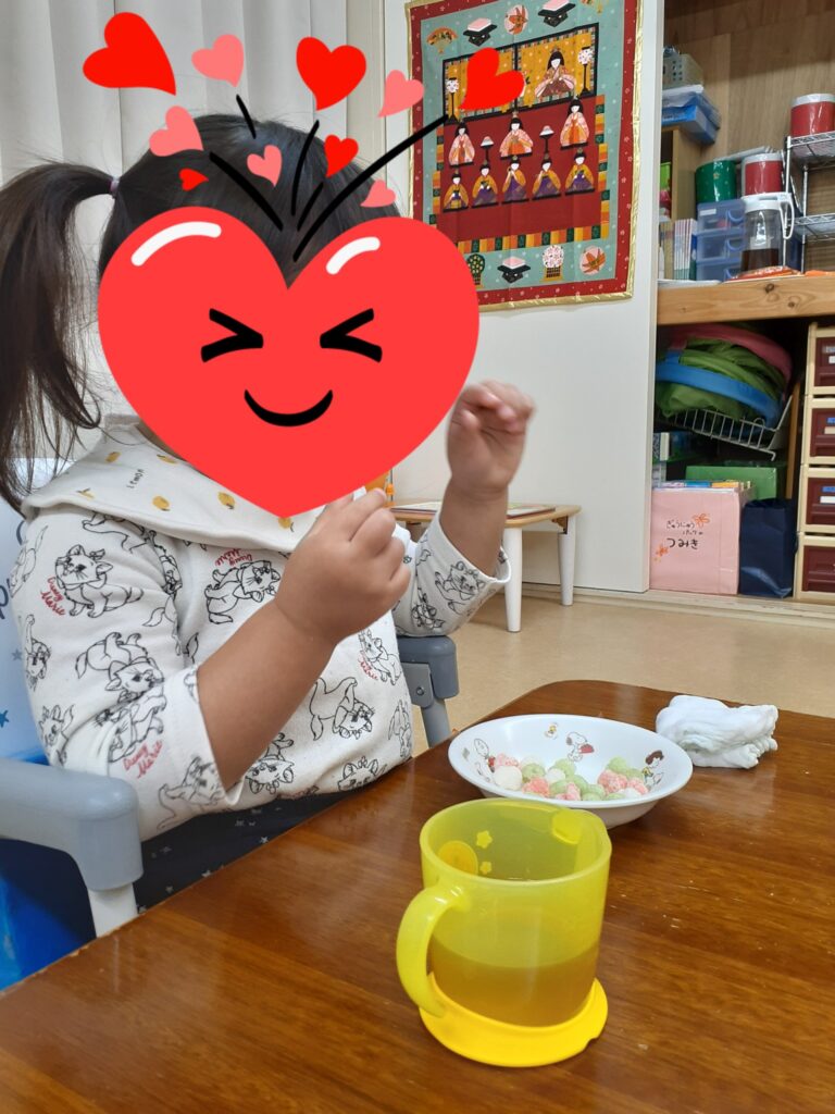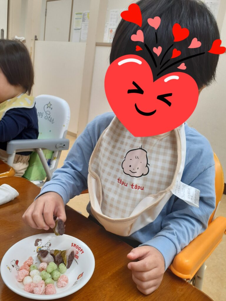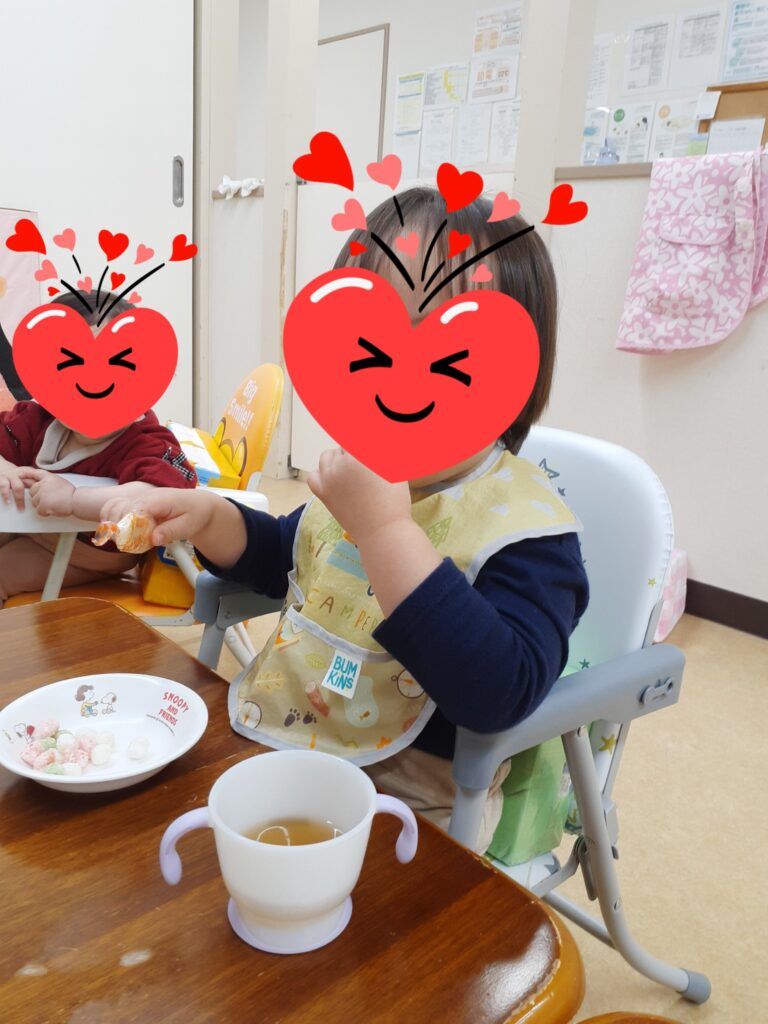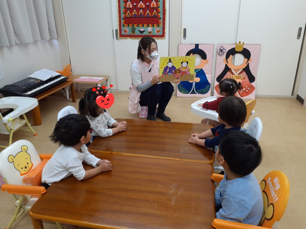 3月3日にひなまつり会を行いました!ひなまつりの紙芝居を聞いたり、『うれしいひなまつり』の歌をみんなで一緒に歌ったりと楽しい時間を過ごしました♪そしてお待ちかねのおやつの時間!ひなあられや桜餅も食べて、ひなまつりを満喫した子どもたちでした♪